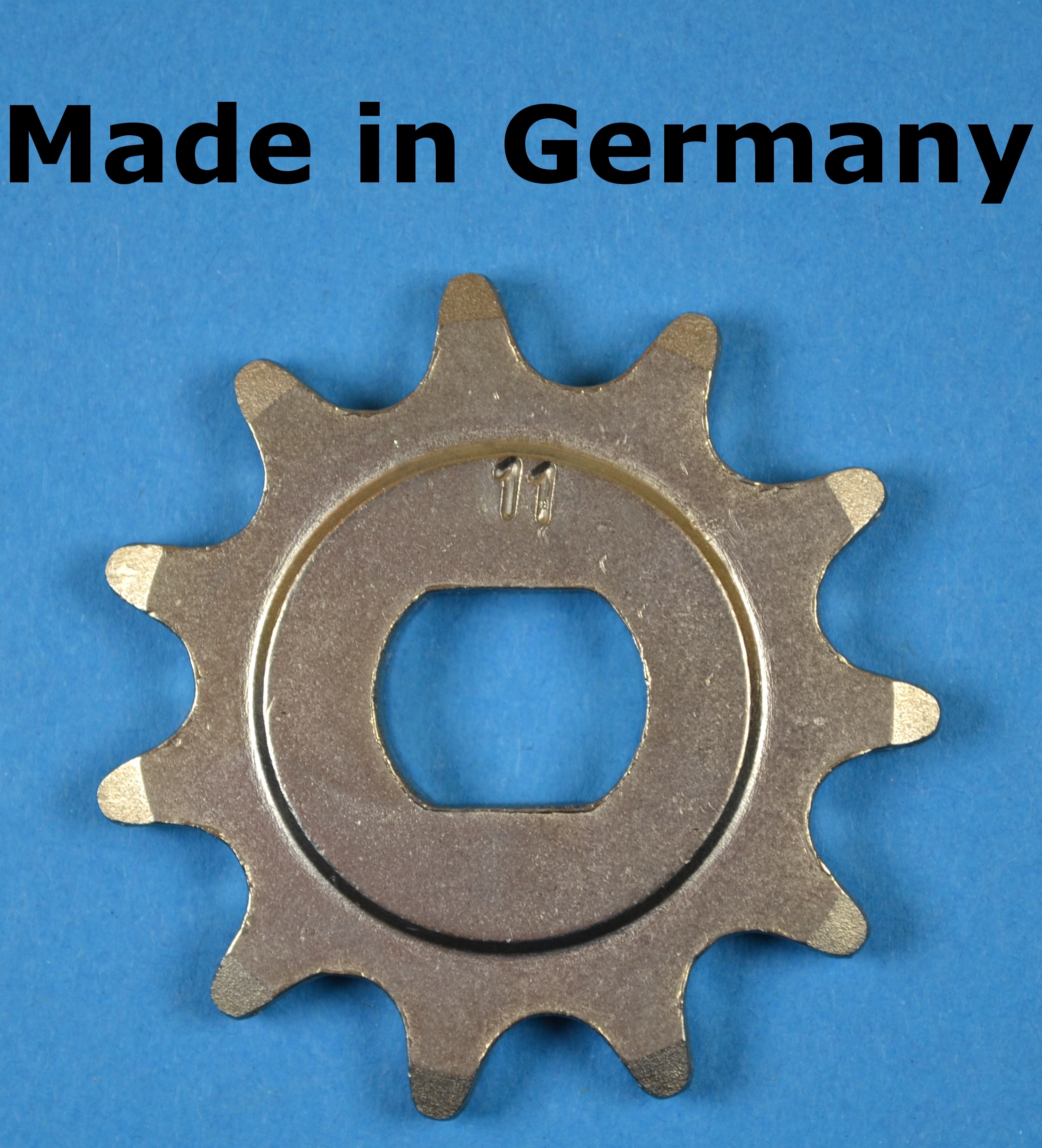 Neues ESJOT Kettenritzel/Motorritzel (Made in Germany) mit 11 Zähnen, das bei diversen Hercules/Sachs/DKW Prima 2,3,4,5,5S,6 und auch bei einigen Modellen der M,P und Optima Serie verbaut werden kann. Im Prinzip bei allen Modellen mit SACHS 505/x Motor.