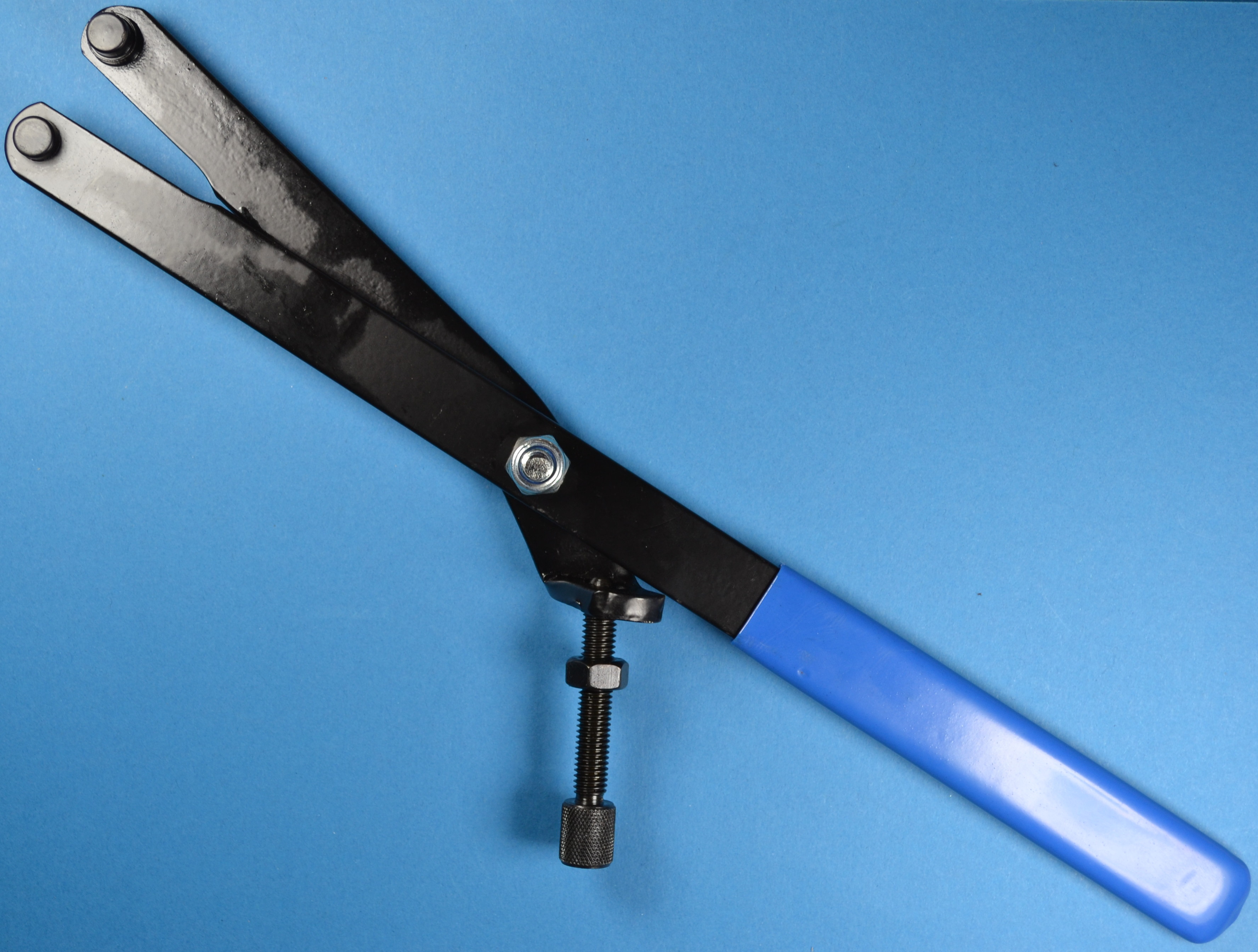 Neuer verstellbarer Stirnlochschlüssel bzw. Zapfenschlüssel, der z.B. die Polräder von SACHS 504 und 505 Motoren schonend fixiert, damit das Polrad (de-)montiert werden.